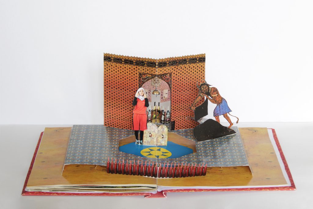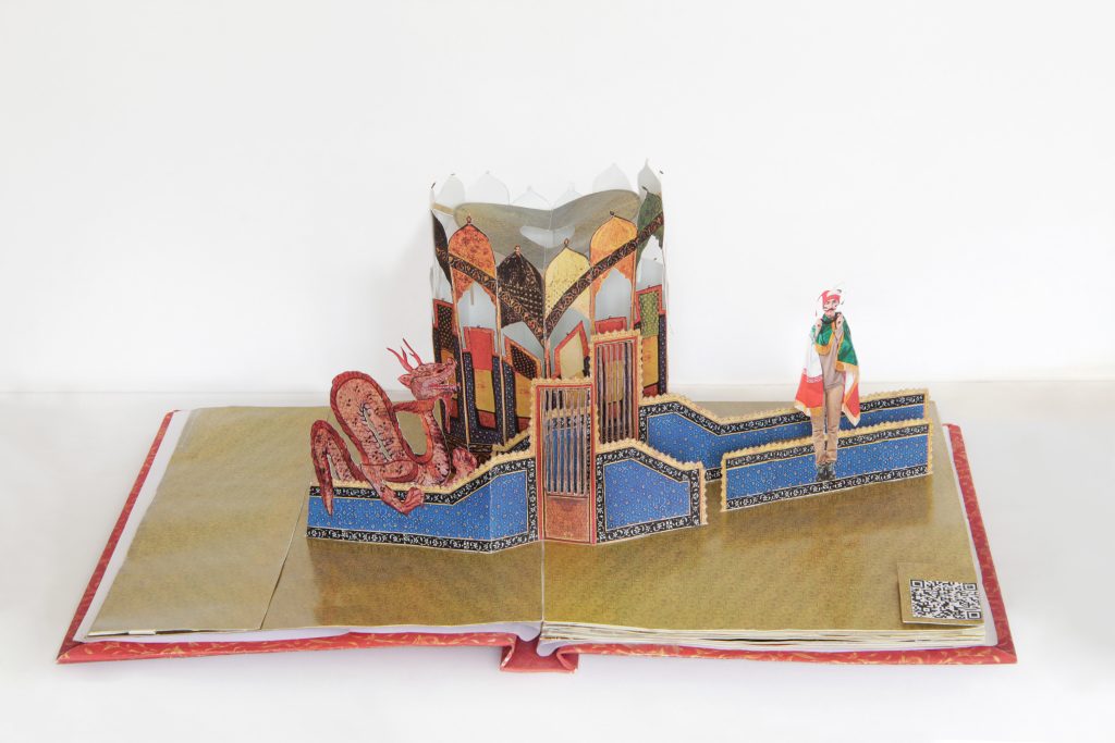Beasts are usually depicted with dark colors and unconventional shapes, while heroes are designed with bright, beautiful colors and graceful movements. Creating this photography series in the form of a pop-up book allowed me to bring the hero of the story into a three-dimensional space amidst the evil elements that have been created in a two-dimensional form by Iranian miniature masters for centuries. This tale of good and evil continues.